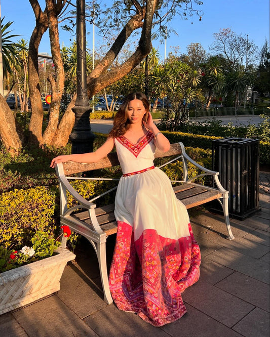 Handcrafted Ethiopian Dress White & Red Habesha Dress Festive Habesha Kemis 272
