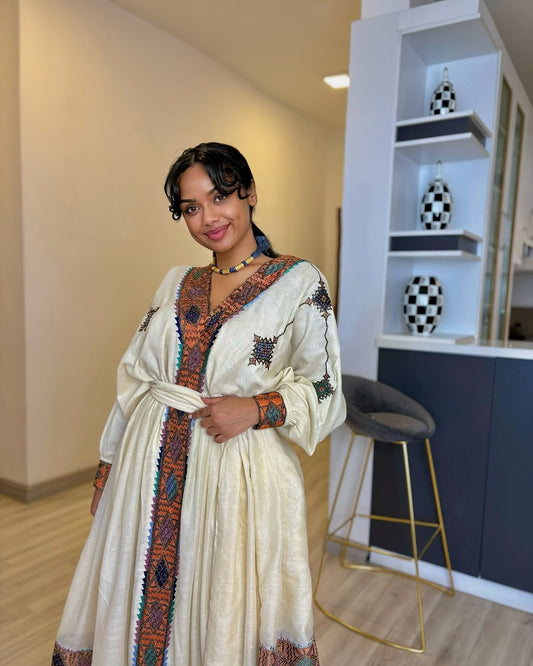 Glamourous Multicolored Ethiopian Dress: Cultural Handstitched Habesha Clothing for Big and Small Events Traditional Dress