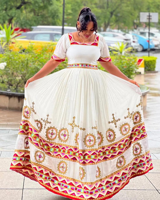 Delightful Multicolored Habesha Dress: Traditional Ethiopian Dress with Bold Design and Colors