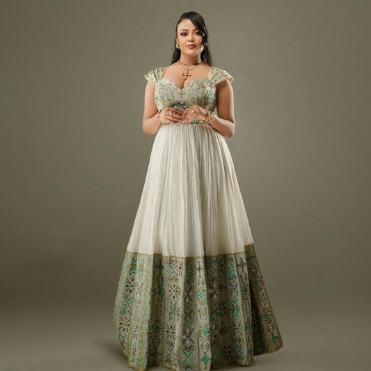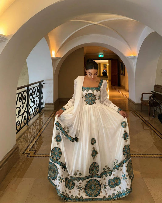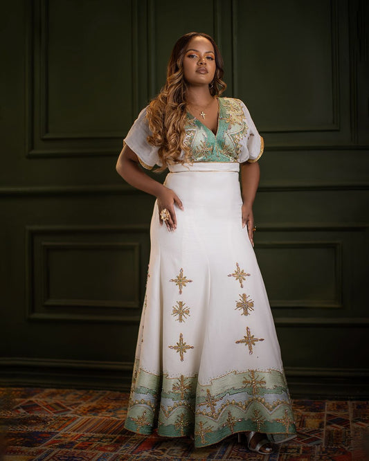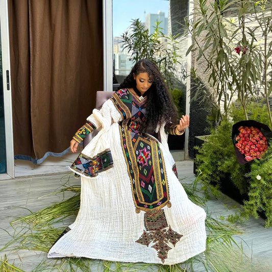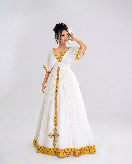 Remarkable Ethiopian Traditional Dress with Ornamented Embroidery: Habesha Dress for Holidays and Gatherings