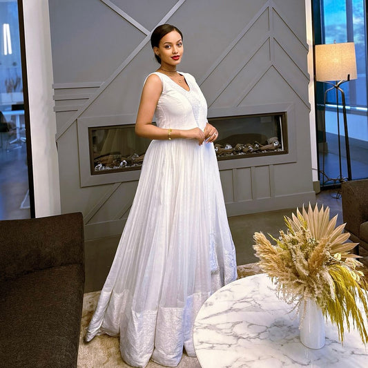 Exceptional Handwoven Sleeveless Traditional Ethiopian Dress: for Angelic Tradtional Habesha Look