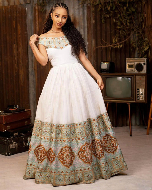 Traditional Gondar Ethiopian Dress Simple Cultural Habesha Dress