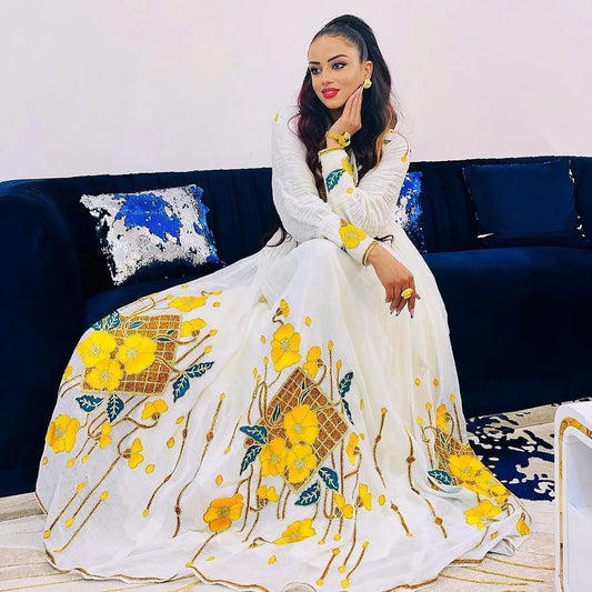 Exquisite Yellow Habesha Kemis Modern Habesha Dress Ethiopian Dress Style Traditional Habesha Libs