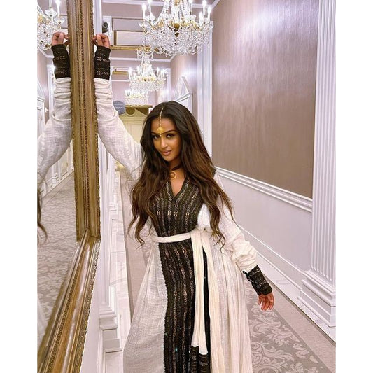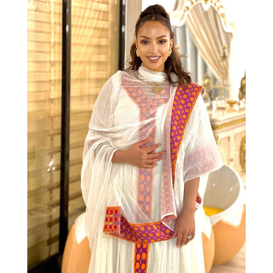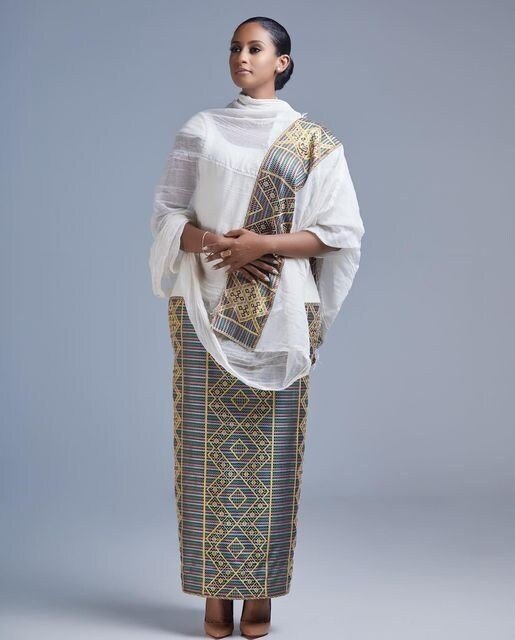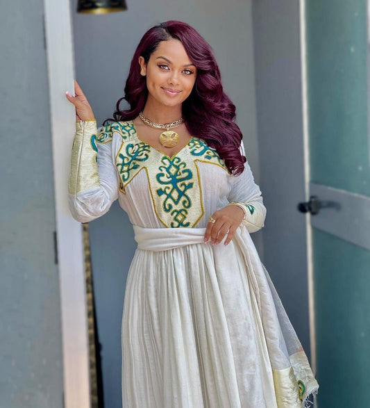 The Modern Full Tilf Habesha Dress with Menen Fabric, habesha libs, habesha kemis, ሀበሻ