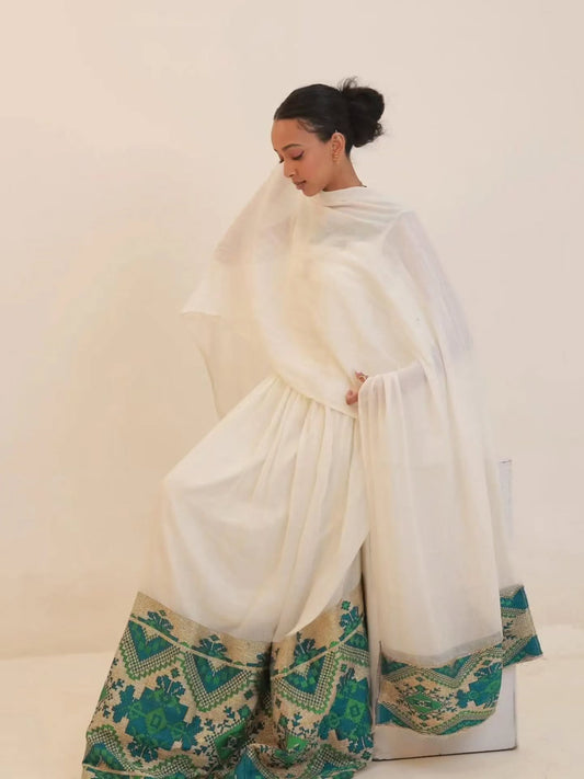 Elegant Habesha Kemis Green Tilet Detailing Habesha Dress Traditional Ethiopian & Eritrean Dress 133