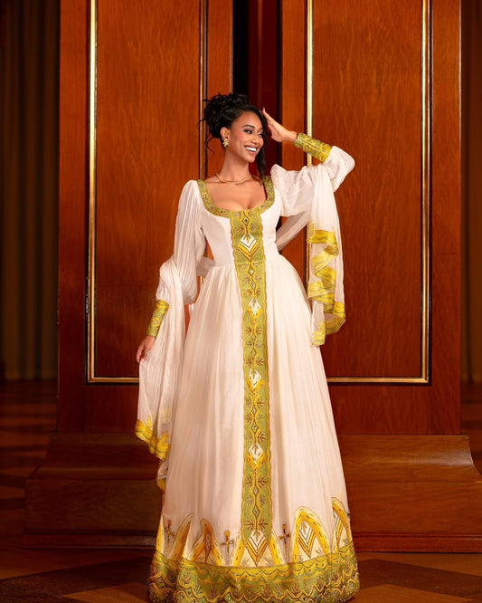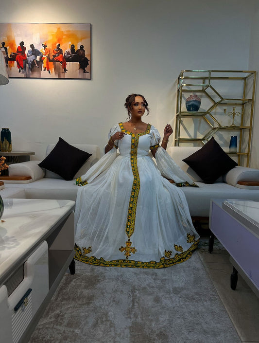 Ethiopian Traditional Dress Gold Embroidered Habesha Kemis & Cultural Attire Graceful Habesha Dress 156