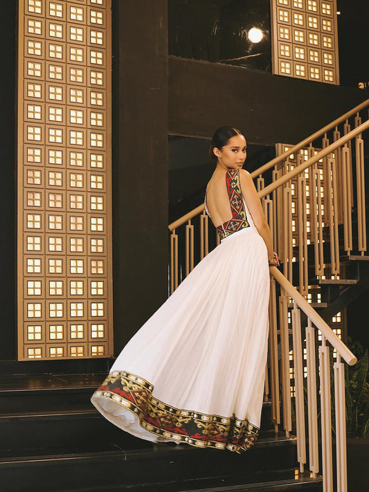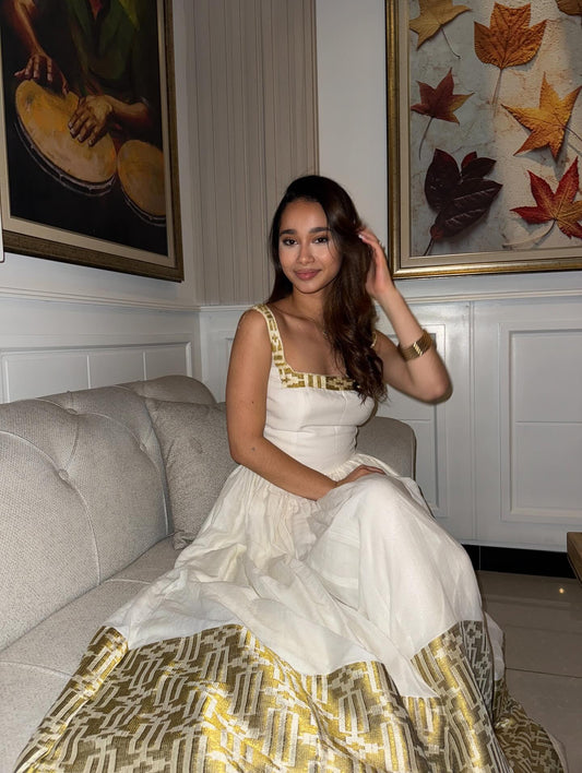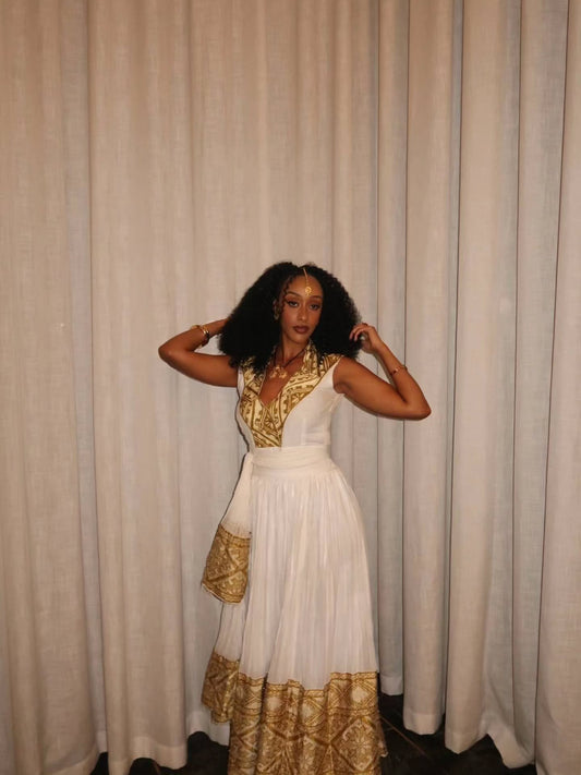 Sleeveless Habesha Dress Gold-Embroidered Ethiopian Traditional Clothing Graceful Habesha Dress 124