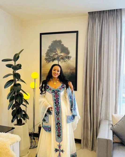Regal Ethiopian Clothing Handcrafted Habesha Kemis with Tilet Embroidery Timeless Habesha Dress 0038