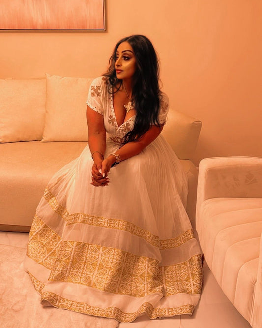 Stunning Habesha Kemis Gold Tibeb Embroidery Ethiopian Traditional Dress Beautifully Crafted Habesha Dress 0046