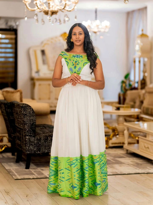 Green embroidery Habesha Dress Authentic Ethiopian Traditional Dress & Classic Habesha Kemis 164