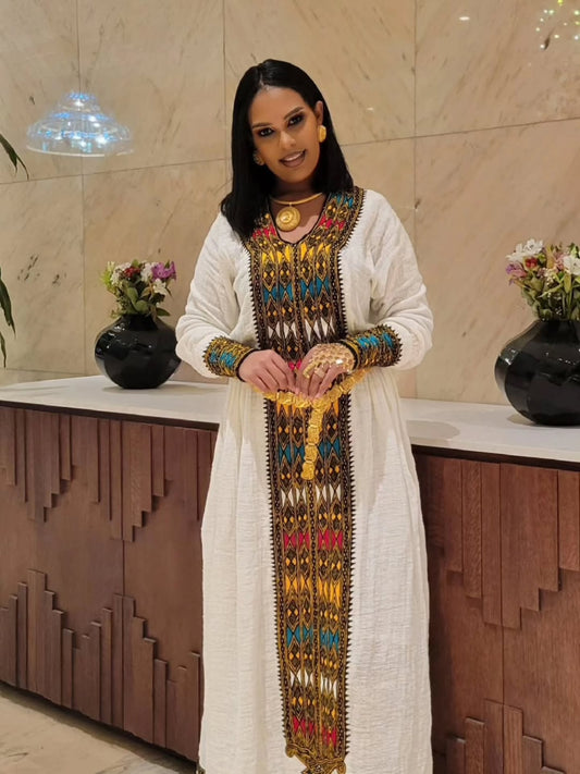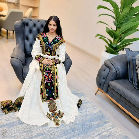 Multicolored Embroidery Ethiopian Traditional Dress Cultural Style Habesha dress Stunning Habesha Kemis 146