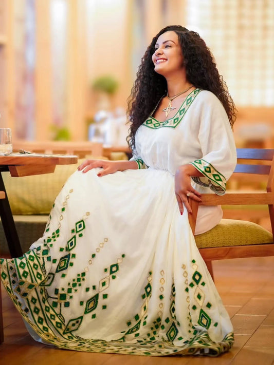 Green Embroidery Habesha Dress Handwoven Habesha Kemis Traditional Ethiopian Clothing 217