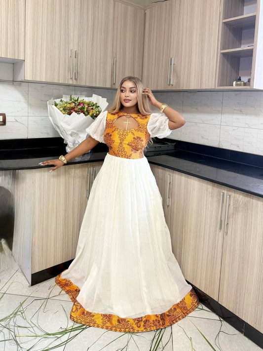 Cross Embroidery Habesha Kemis Traditional Ethiopian Clothing Stylish Habesha Dress 149