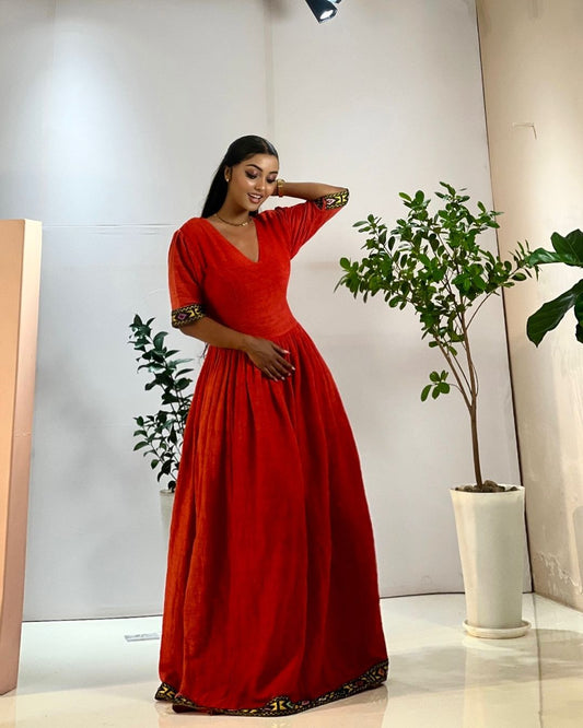 Simplicity in Scarlet Habesha Kemis Modern Habesha Dress Redefined with Timeless Elegance