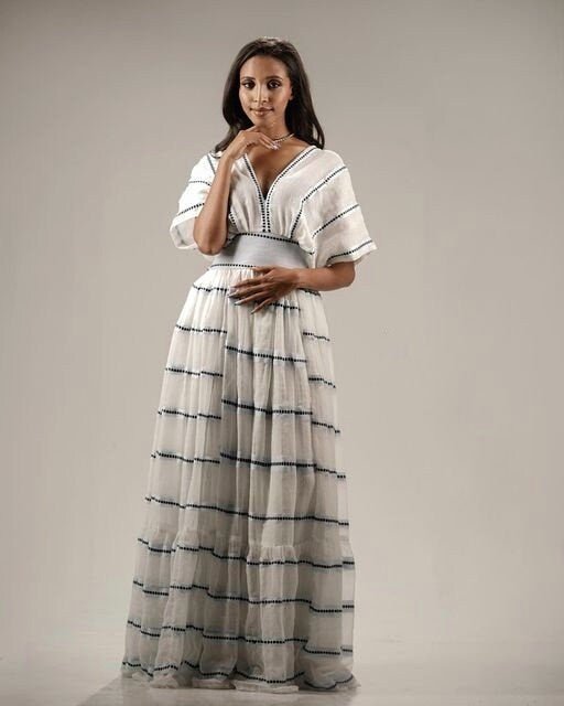 Beautiful & Classy Ethiopian Tibeb Traditional Dress, Handwoven, Menen, Habesha, Eritrean Dress, Habesha Kemis, Habesha, Kemis