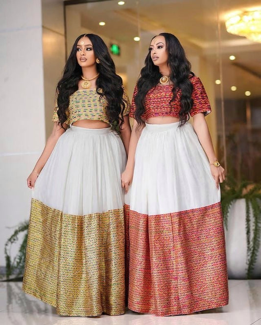 Cultural Habesha Dress with Vibrant Color Ethiopian Traditional Dress Cultural Habesha Kemis