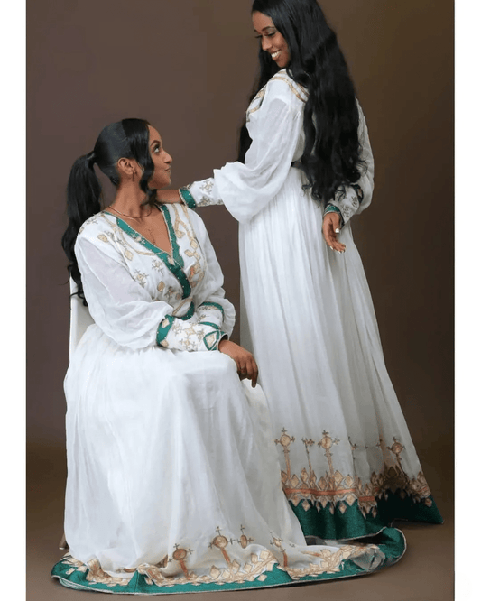 Elegant Green Habesha Dress Traditional Amhara Habesha Kemis Ethiopian Traditional Dress
