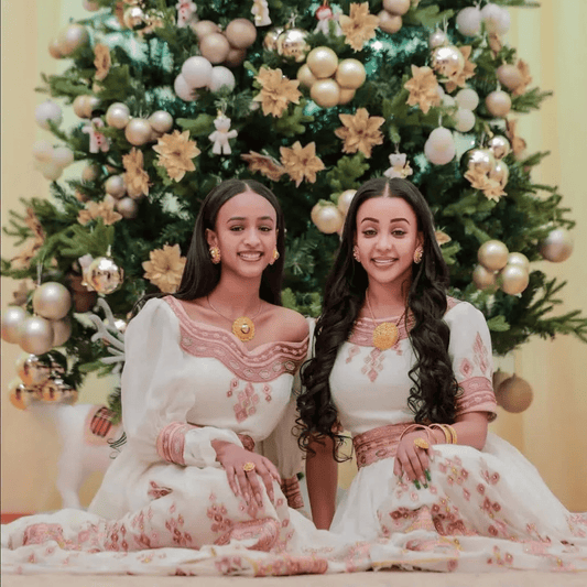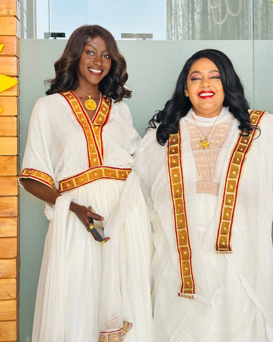 Golden with Red Diamond Embellishment Habesha Dress: for Cultural Events Elegant Traditional Ethiopian Dress