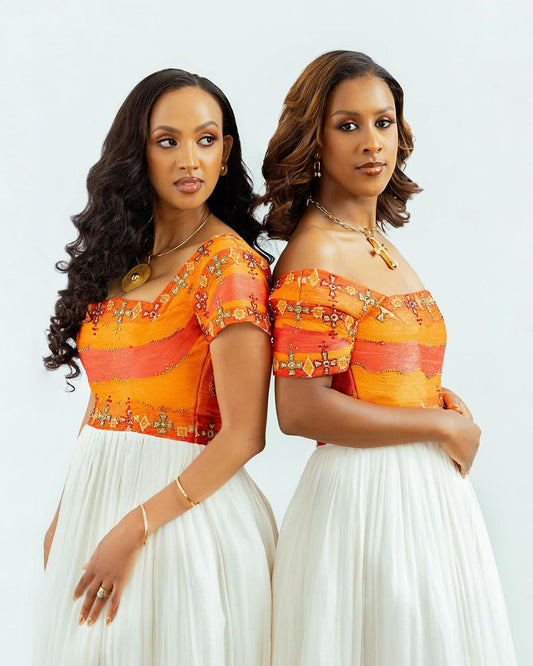 Radiant Elegance: Embrace the Splendor of Habesha Kemis - Vibrant Orange Ethiopian Dress