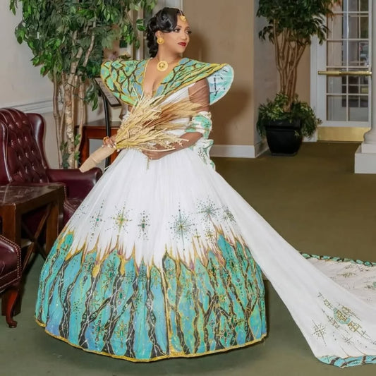 Magical Multicolored Ethiopian Wedding Attire: Intricately Handmade Matching Habesha Couples Outfit