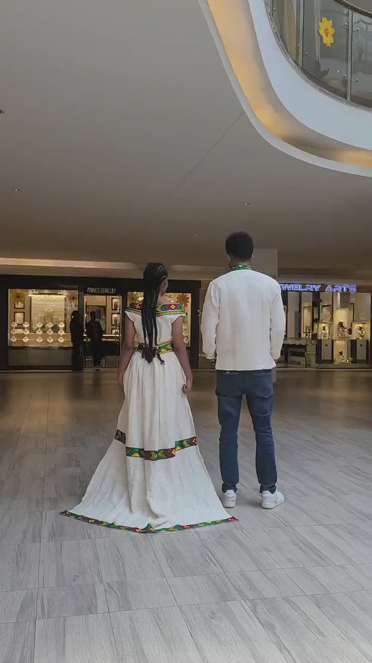 Discover coordinated Ethiopian couple’s outfits made for love and tradition. From weddings to holidays, our Habesha wedding wear captures the spirit of togetherness.