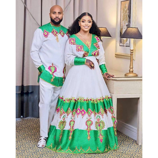 Gorgeous Couples Matching Traditional Cloth for Men and Women Wedding Habesha Cloth