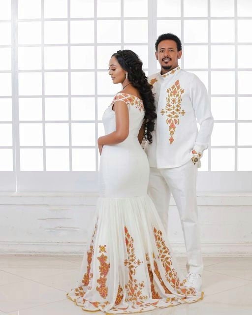 Beautiful Wedding Outfit Couples' Wedding Cloth Habesha Couples' Wedding Dress Zuria Habesha Cloth for Couples