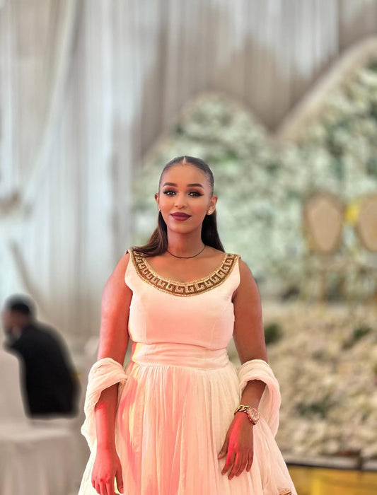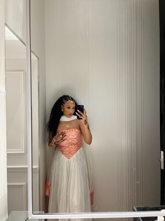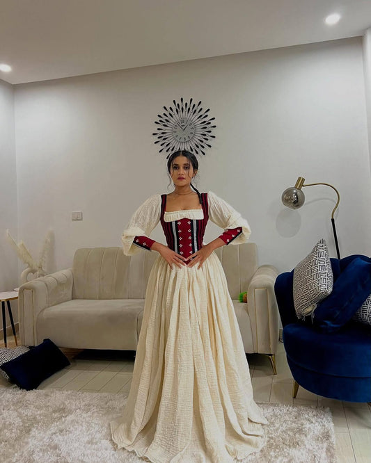 Modern Habesha Dress Ethiopian & Eritrean Style Habesha Kemis Ethiopian Clothing With Corset Inspired Bodice 146