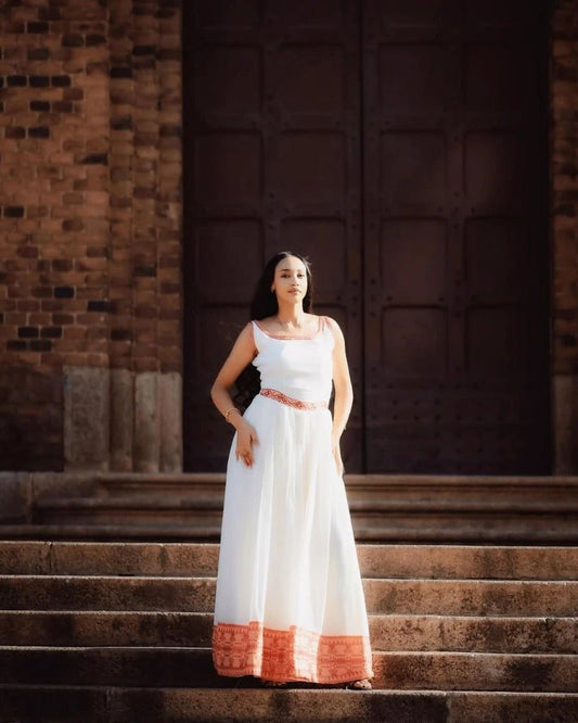Orange And White Ethiopian Traditional Dress Simple Habesha Kemis Unique Habesha Dress For Event 194