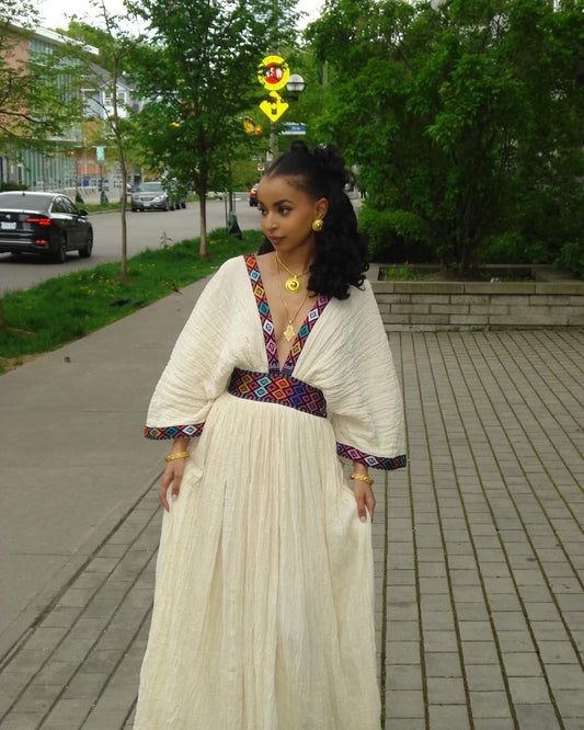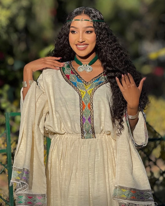 Elegant Habesha Dress with Colorful Embroidery – Ethiopian Traditional Clothing – Habesha Kemis