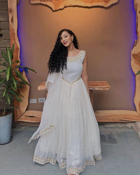Simple Habesha Dress with Gold Accents – Ethiopian Traditional Clothing – Habesha Kemis