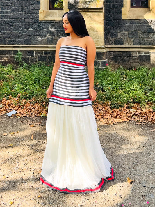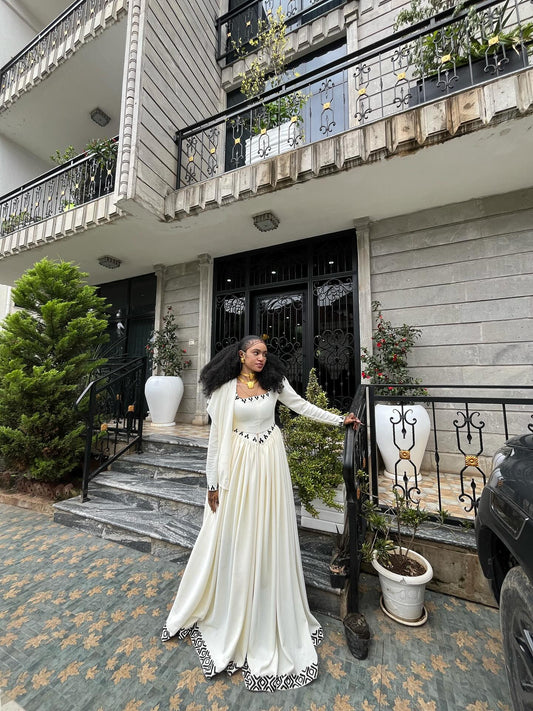 Oromo Traditional Dress Black & White with Flowing White Skirt Oromo Dress Graceful Oromo Kemis 114