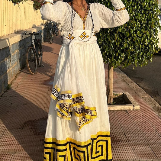 Lavish Cultural Look in Habesha Dress: Meticulously Crafted Traditional Ethiopian Dress Tailored for Every Occasions Habesha Kemis