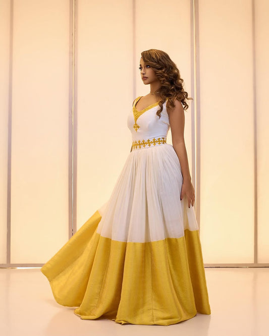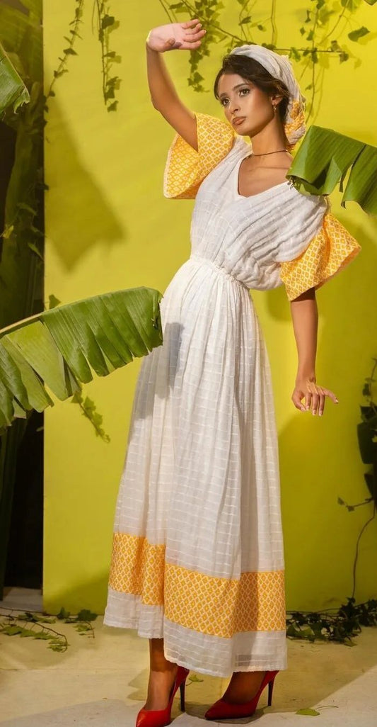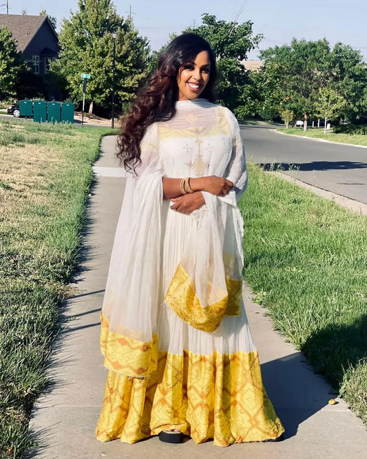 Enchanting Yellow Habesha Dress: Simple Design Traditional Ethiopian Dress