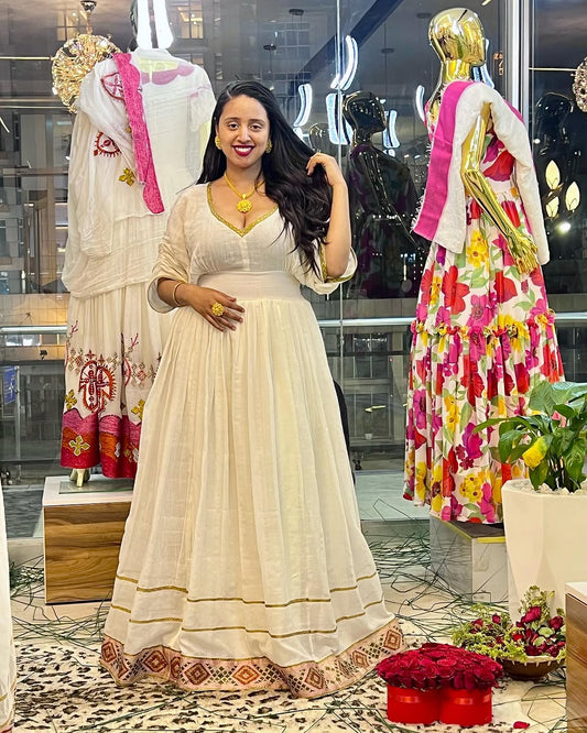 Comfortable simple Ethiopian dresses perfect for everyday wear. Whether you're heading to a casual gathering or simply embracing your roots, our lightweight Habesha kemis offer relaxed traditional style.