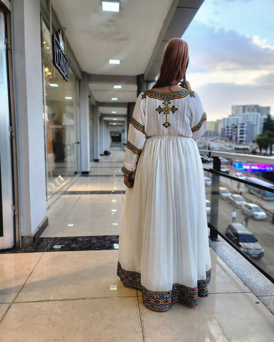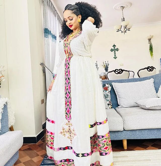 Sophisticated Look with Traditional Ethiopian Dress: Handmade Embroidery Habesha Dress