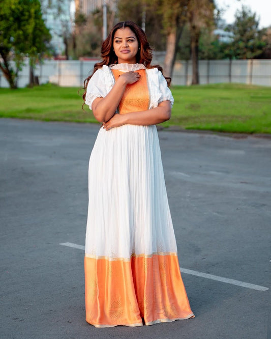 Orange Simple Habesha Dress Modern Habesha Kemis Design Ethiopian Dress Style