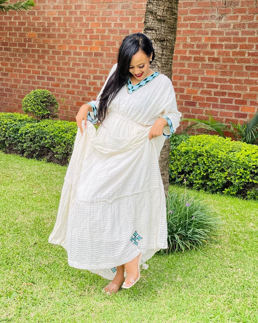 Graceful Blue Accent Habesha Dress Minimalist Traditional Wear