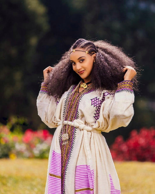Light Purple Fetil Ethiopian Cultural Dress Traditional Habesha Kemis Ethiopian Dress Style