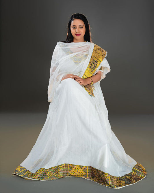 Golden Splendor Ethiopian Dress Radiant Habesha Kemis - A Tapestry of Ethiopian Beauty