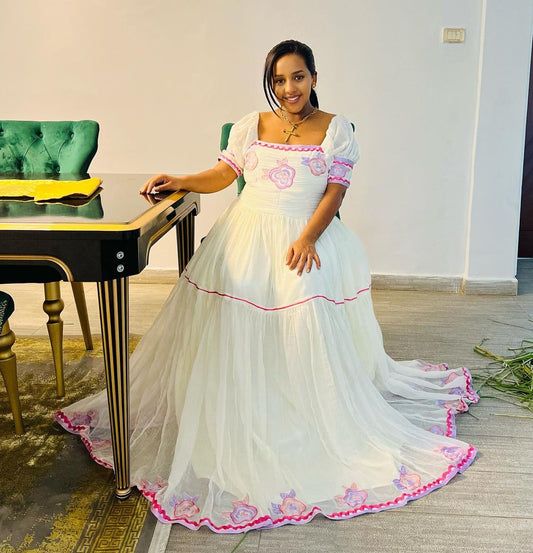 Pink Tilet Exquisite Habesha Dress Modern Habesha Kemis Ethiopian Dress Style Traditional Habesha Libs