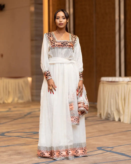 Ethiopian Essence Habesha Kemis Simplistic Menen Fabric Habesha Dress