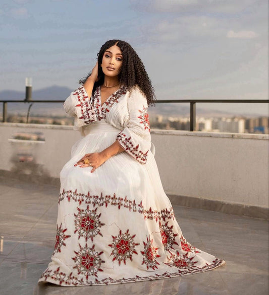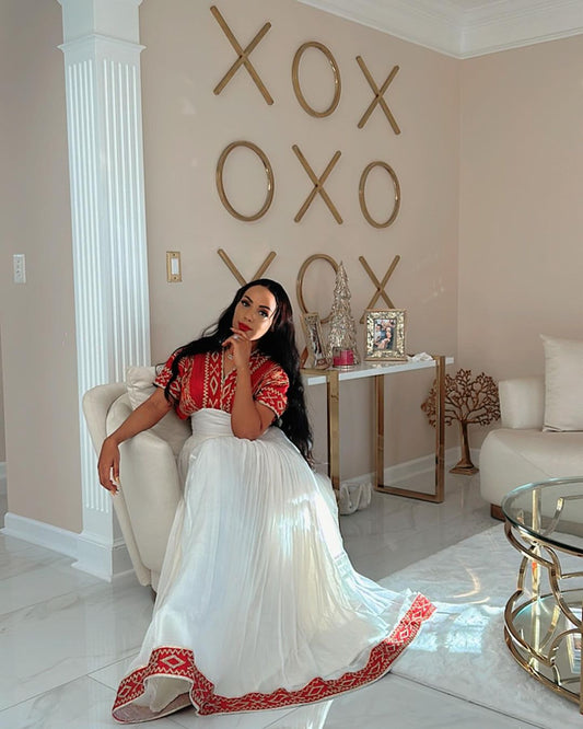 Elegant Habesha Dress Red-Infused Habesha Kemis Ethiopian Dress Style