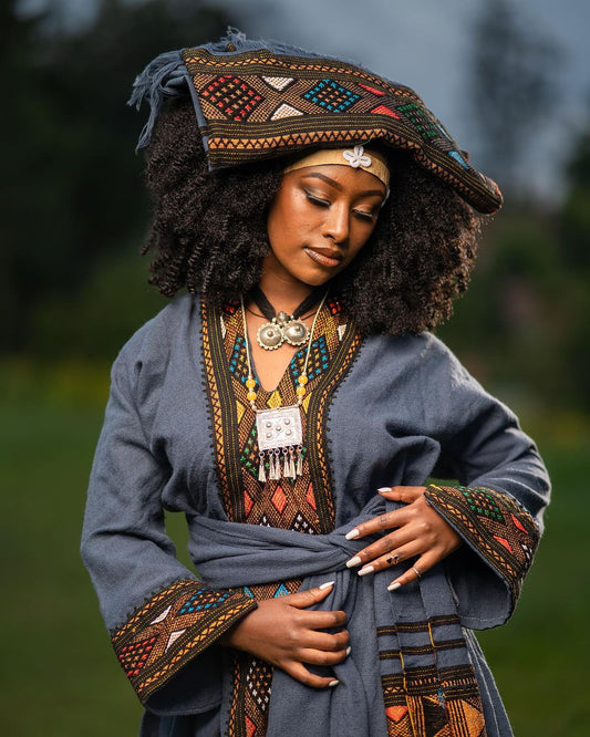 Elegance in Indigo: Exploring the Intricacies of the Habesha Kemis