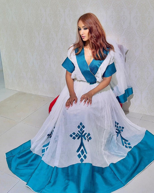 Blue Raya Ethiopian Traditional Dress Cultural Ethiopian Wear