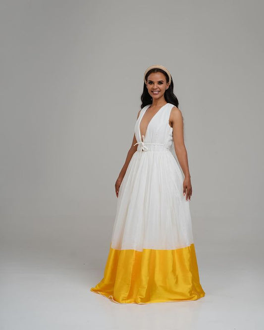 Classic Yellow and Green Detailing Habesha Dress: for Cultural Celebrations Traditional Ethiopian Dress
