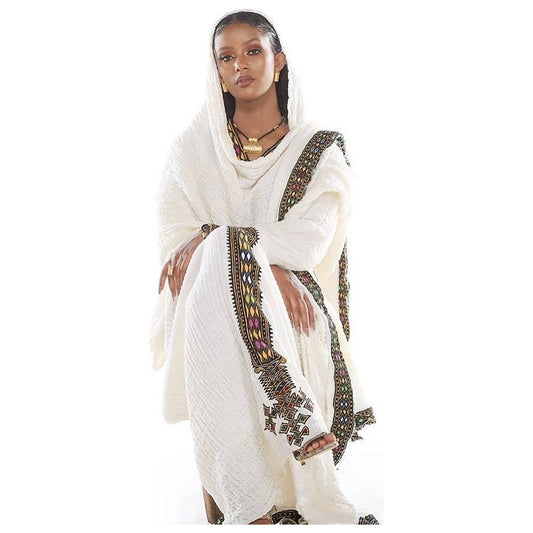 Elegant & Classy Ethiopian Handwoven Traditional Dress, made from a delicate fabric called Menen.