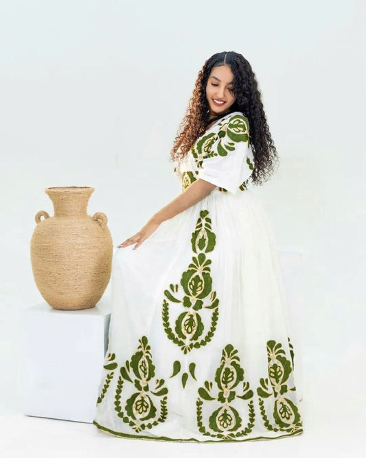 A Beautiful Habesha Kemis with Intricate Tilf Embroidery and Rich Menen Fabric , Habesha Kemis, Eritrean dress