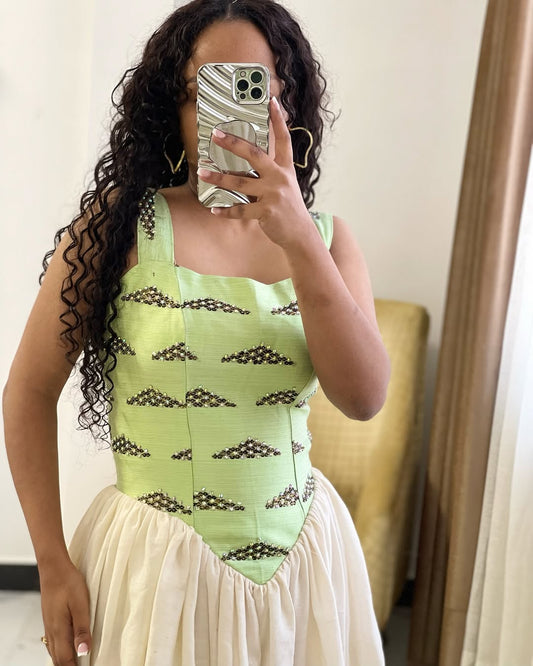 Olive Green Corset Habesha Dress: Sleeveless Modern Traditional Ethiopian Dress Radiant Habesha Kemis