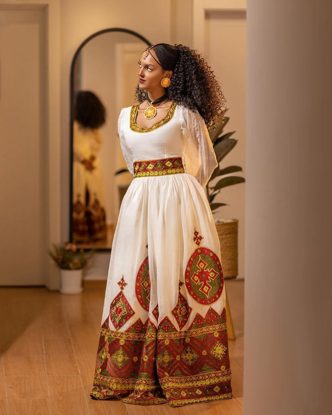 Adorn yourself in the mesmerizing beauty of Ethiopian tradition with our Beaded Detailed Habesha Kemis. This stunning ensemble features intricate patterns meticulously crafted with exquisite beads, showcasing the artistry and skill of Ethiopian artisans. Each bead is carefully placed to create a dazzling display of elegance and sophistication, adding a touch of opulence to the timeless silhouette of the Habesha dress. Whether worn for cultural ceremonies, weddings, or special events, our Habesha Kemis is a true masterpiece that pays homage to the rich heritage of Ethiopian dress while exuding contemporary allure. Step into the spotlight and embody the essence of Ethiopian beauty with this captivating ensemble.